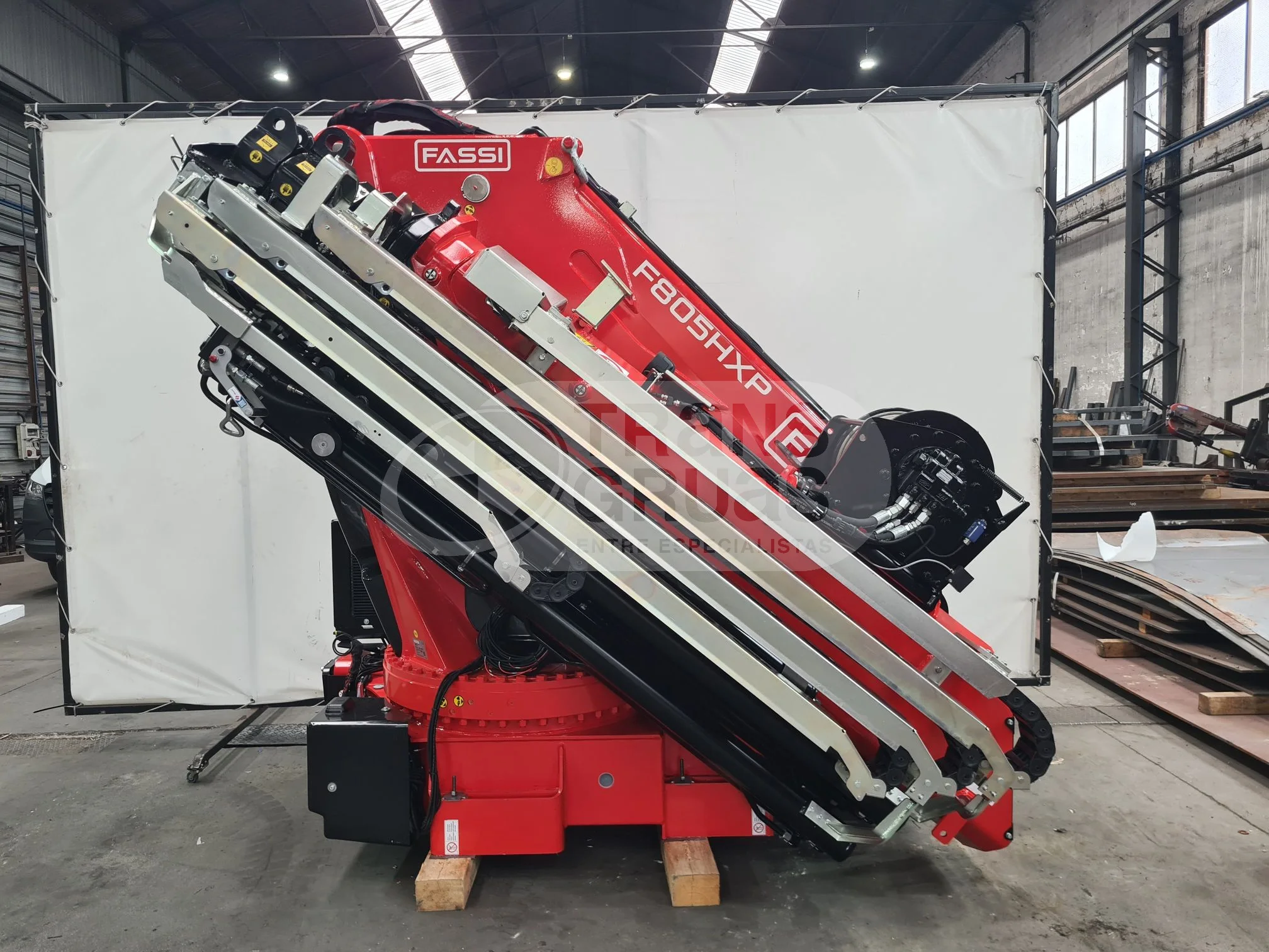 For sale: the FASSI F805R.2.7 HXP TECHNO, a 75 tm/m continuous rotation crane from FASSI’s heavy-duty TECHNO range. It is equipped with 7 hydraulic extensions and a Scanreco V7 remote control with 8 functions. Its maximum hydraulic reach extends up to 30.1 m with the JIB, delivering outstanding lifting performance.