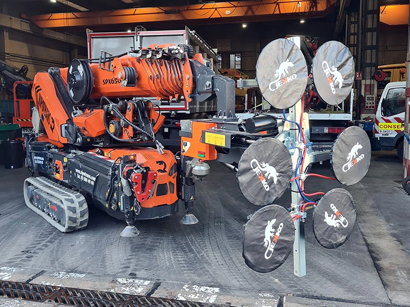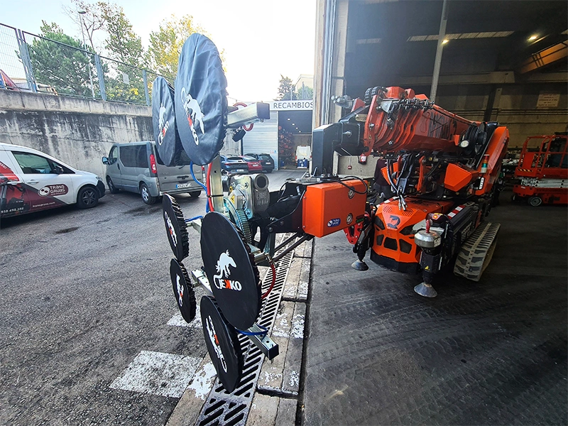 This November, Ripotrans once again placed its trust in Transgrúas by adding a new piece of equipment to its fleet: a Jekko JVM800 glass suction cup, designed to facilitate the assembly, installation, and handling of large-format glass panels with complete safety and precision.