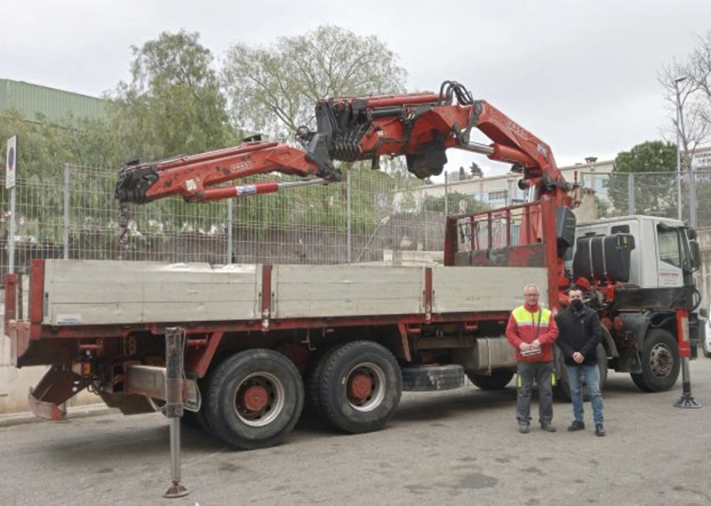 We continue with the delivery of a Fassi F800AXP.26 knuckle boom crane to our client Materials per la Construcció Baix Sagria, SL. A checked and tested crane of our wide used cranes stockland. It is a crane of 2003, with 6 hydraulic extensions and a L414 jib of 4 more hydraulic extensions. The knuckle boom crane has also a winch and HBC remote control. This crane has been assembled on our client's truck after disassembling the old used crane.