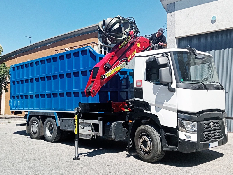 The crane is ideal for mounting on 18 or 26-ton trucks, paired with hooklifts or tipper trucks, thus adapting to the logistical needs of the metal recycling sector.