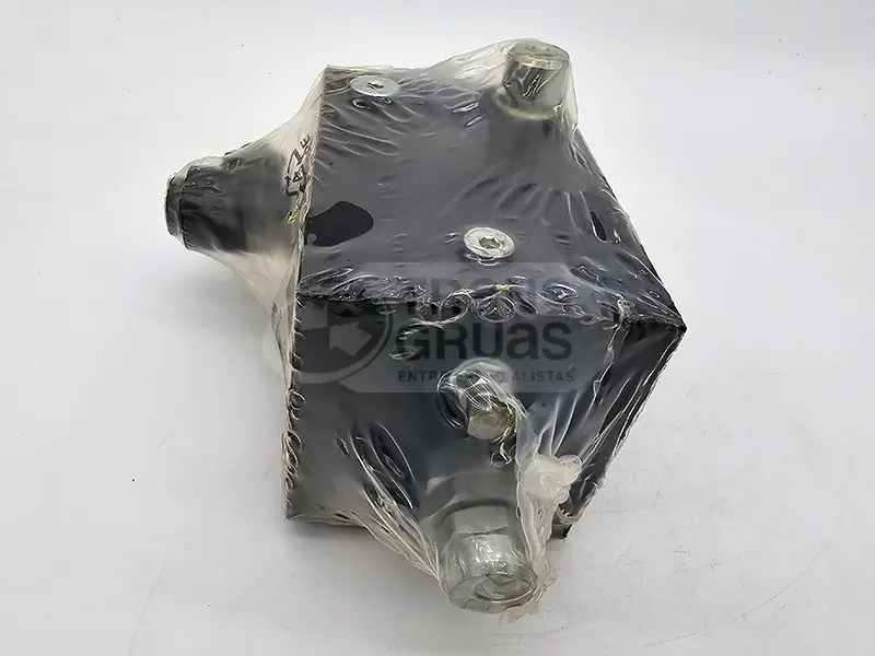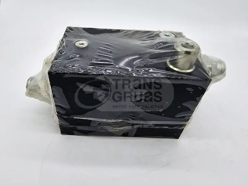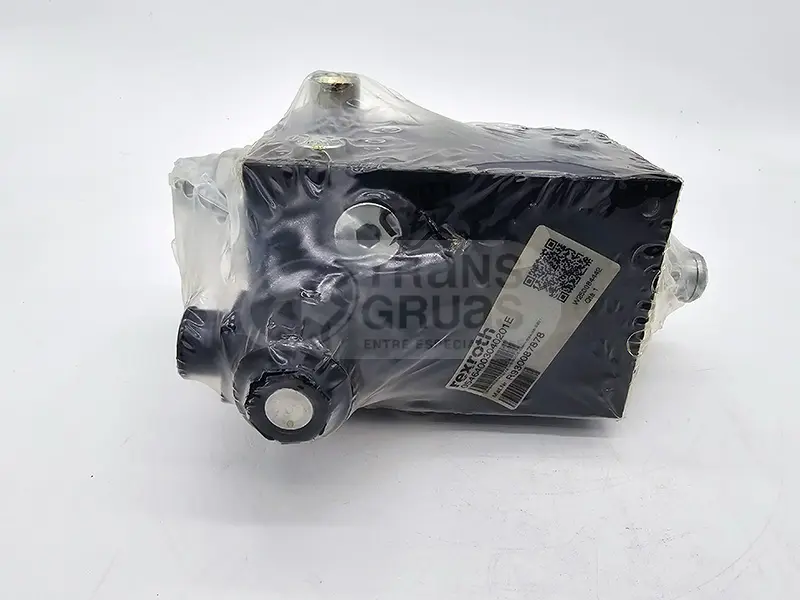 Regenerative oil valve for extensions of Fassi crane. The valve's function is to regulate and protect the hydraulic circuit by limiting oil flow pressure, preventing overloads and ensuring a constant oil flow. Many types of valves are available for different crane components.
