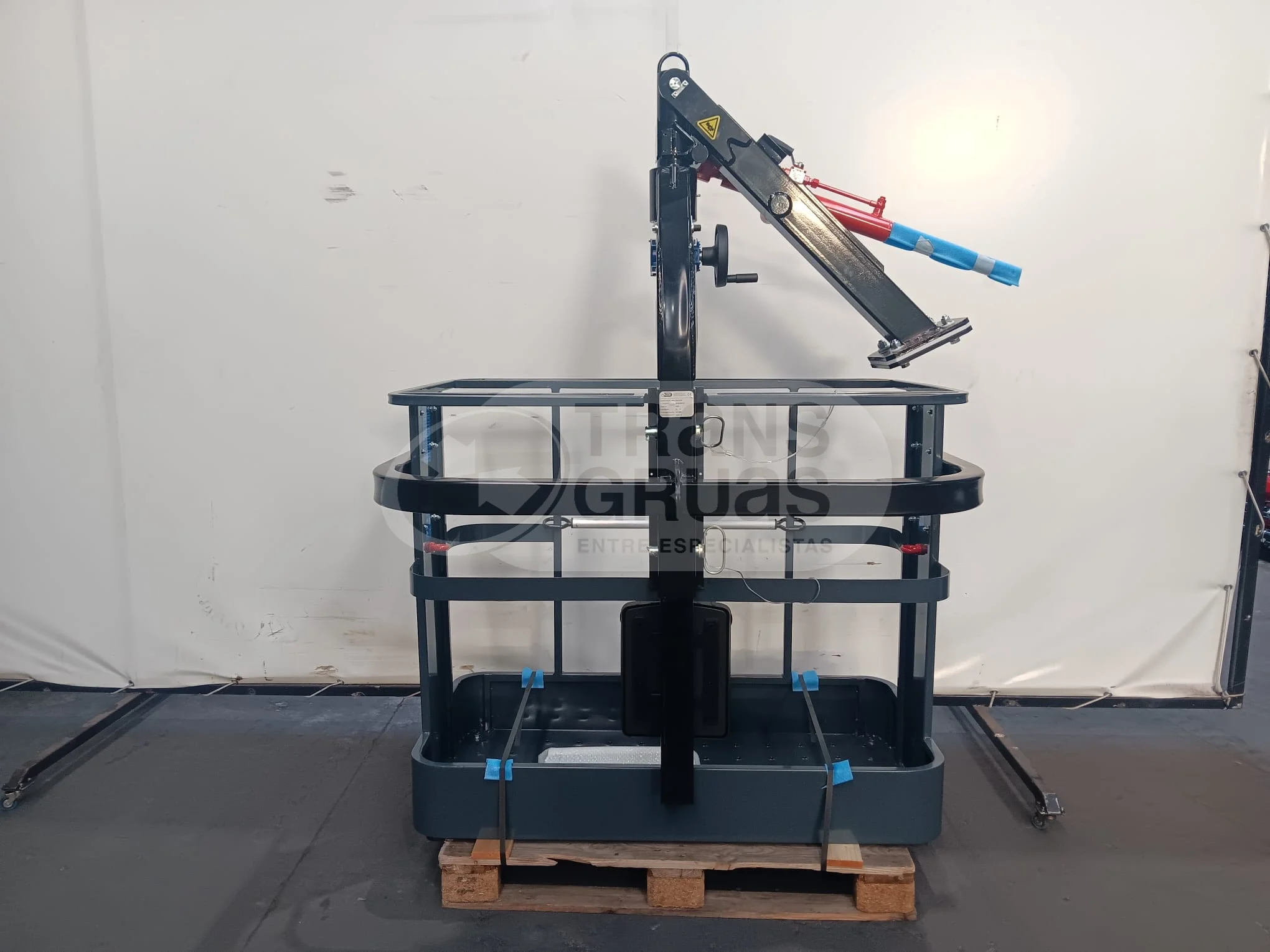 A la venta cesta para grúa hidráulica de entrega inmediata. Cesta porta operarios de acero para 2 personas: tiene una capacidad de carga de 200 Kg, así pues es apta para dos operarios + herramientas. Cuenta con rotación manual. Consulte con el departamento comercial el acoplamiento adecuado en función de la marca y modelo de grúa en que se acople la cesta.