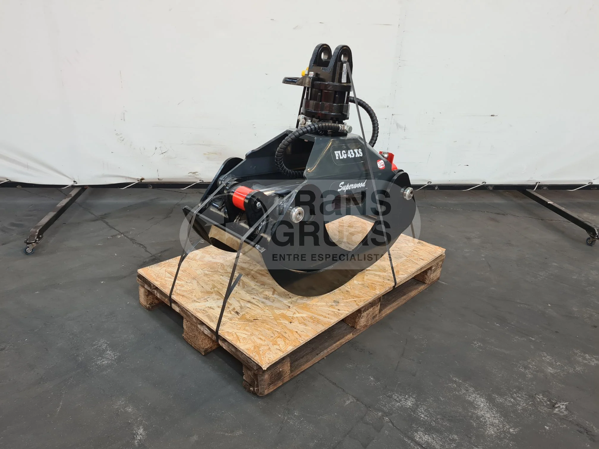 Grapa o pinza para acoplar a grúa para manipulación de troncos, incluye el rotator. Disponible en entrega inmediata. Recuerde que en Transgrúas encontrará una amplia variedad de accesorios para grúas, nuevos y de ocasión.