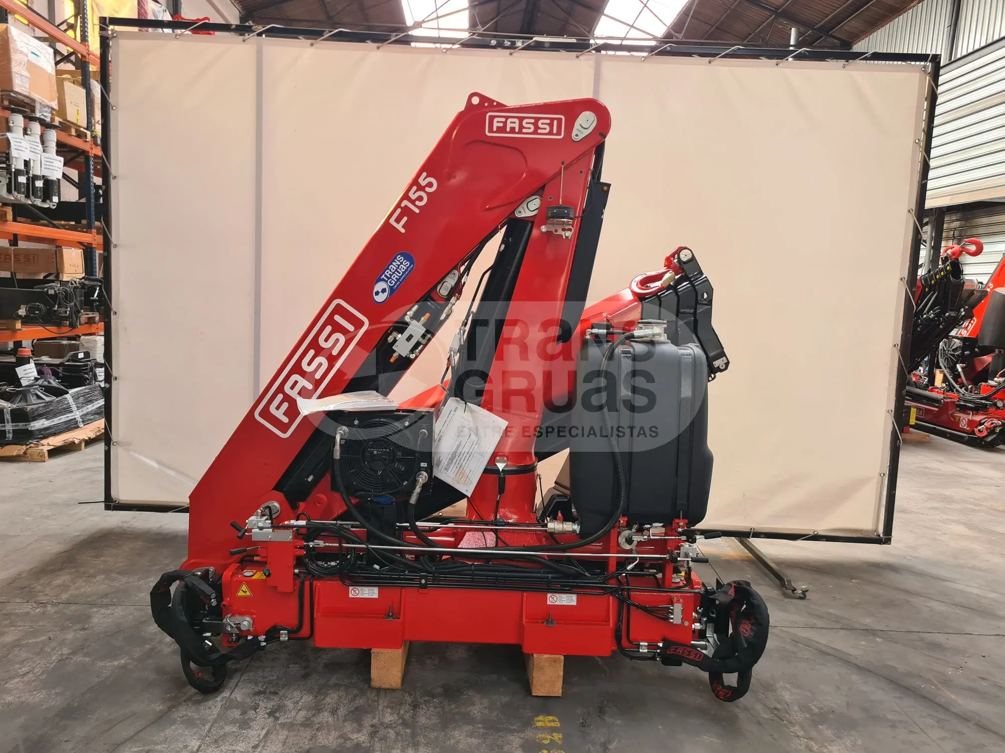 En venta grúa hidráulica de 12.55 tm. Fassi F155A.0.24 E-active. La grúa tiene 4 extensiones hidráulicas y un alcance de 12,55m. Pertenece a la gama moderna de grúas Fassi, grúa versión e-active con control de estabilidad FSC M1, limitador electronico FX500, D850, display gráfico y radiador de aceite. Grúa lista para montar: nos podemos encargar del montaje, carrozado final (caja fija o volquete) y legalización. Consulta todos los detalles rellenando formulario más abajo.