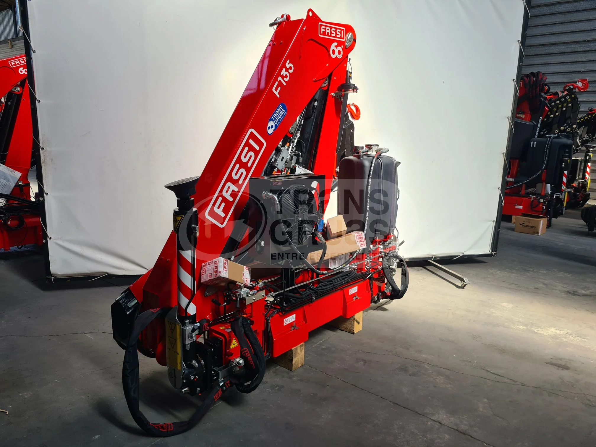 En venta grúa hidráulica de 11,31 tm. Fassi F135A.0.24 E-active. La grúa tiene 4 extensiones hidráulicas y un alcance de 12,55m. Pertenece a la gama moderna de grúas Fassi, grúa versión e-active con control de estabilidad FSC M1, limitador electronico FX500, D850, display gráfico y radiador de aceite. Grúa lista para montar: nos podemos encargar del montaje, carrozado final (caja fija o volquete) y legalización. Consulta todos los detalles rellenando formulario más abajo.